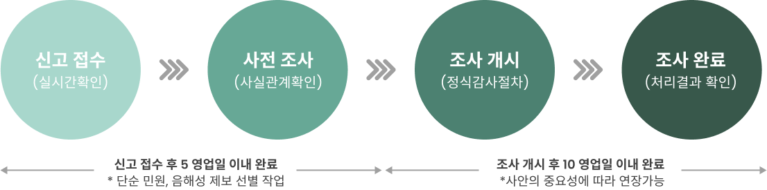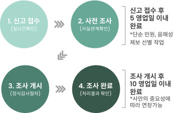신고자가 어떠한 불이익도 받지 않도록 비밀을 철저히 관리하여 처리됩니다.