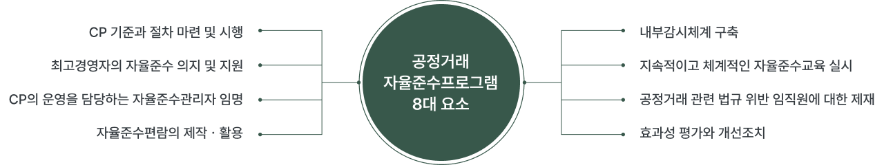 위 공정거래 핵심 강령은 고객 및 협력업체 등 다양한 이해관계자와 임직원 간의 기준이 될 것이며, 종국적으로 임직원들의 공정거래 준수 역량 및 리더십을 강화하고 법령을 준수하며 서로를 독려하는 ‘공정거래 문화’를 내재화하는데 목표를 두고 있습니다.
