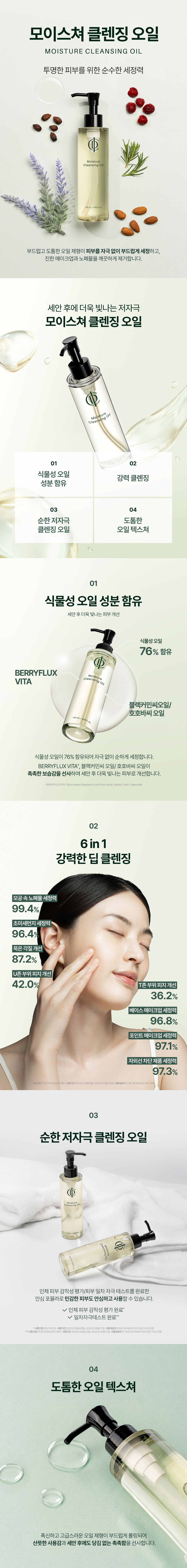 "식물성 오일 76% 함유된 오일이 딥 클렌징과 촉촉한 마무리감을 선사하는 저자극 클렌징 오일"