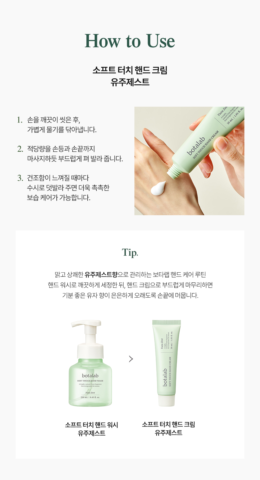 부드럽게 펴 발려 풍부한 보습감만 남기고 가볍게 흡수되는 핸드 크림